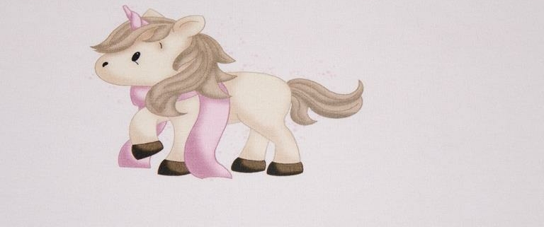 Das Panel ist so eingeteilt, dass du auf den Shirts vorne das Einhorn platzieren kannst und die Ärmel und den Rücken aus dem Herzchen-Stoffteil zuschneidest. So hast du ein tolles Shirt mit zweierlei Mustern aus einem Stoffteil
