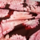 weiße Blumen auf Jeansblau