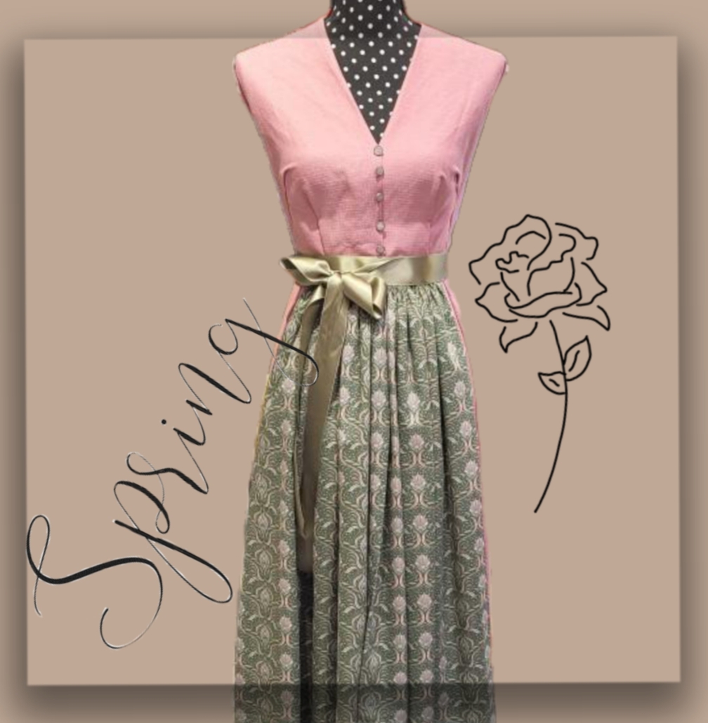 Mit dieser Dirndl-Kombi in Blush-Rosa und Olivgrün sehnen wir uns den Frühling herbei