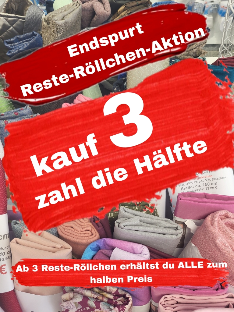 Beim Kauf von 3 und mehr Reste-Röllchen erhältst du ALLE Röllchen zum halben Preis – na wenn das kein Deal ist !!