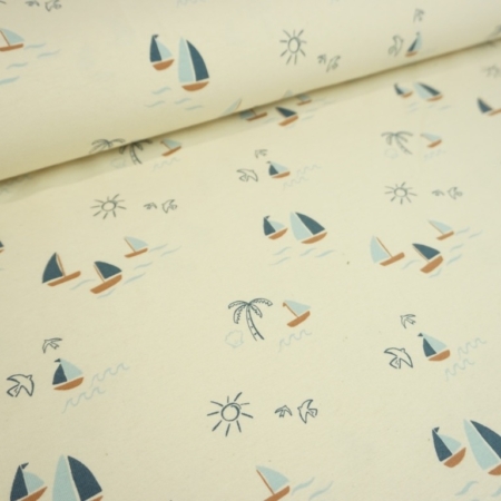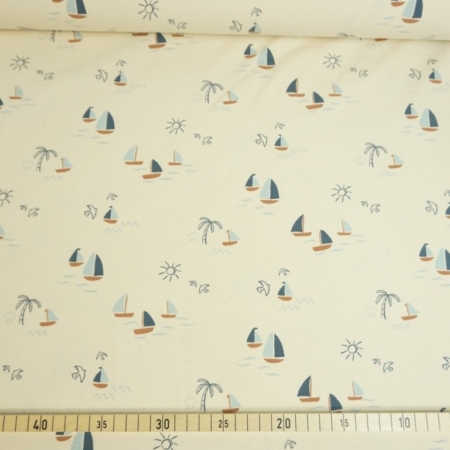 • Segelboote auf Creme, BIO, Baumwoll-Jersey