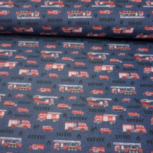 • Feuerwehr Fahrzeuge, jeansblau, 100 % Baumwolle