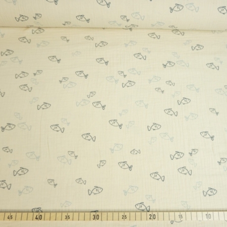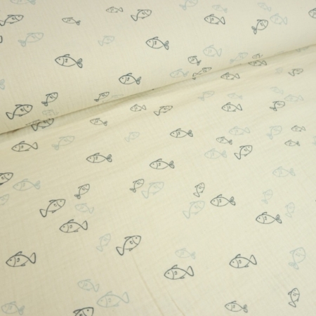• kleine Fische auf Beige, Musselin, Double Gauze