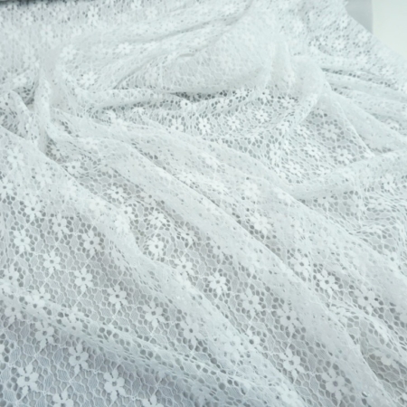 • Spitzenstoff Blümchen Allover, Stickerei, weiß