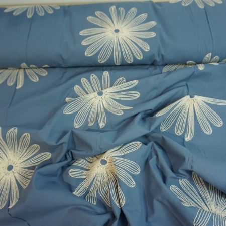 • leichte Blusen-Baumwolle mit Stickerei, Embroidery Flowers, Blumen auf Jeansblau