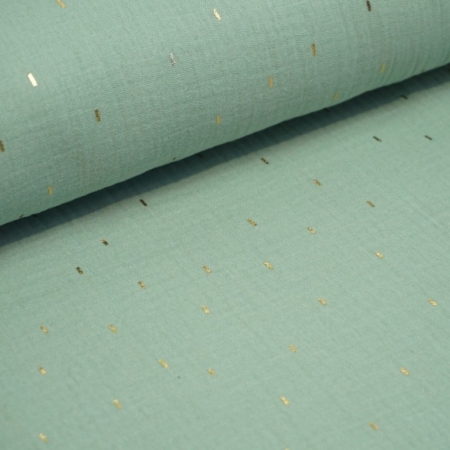 • Musselin, Double Gauze, mint – gold, mit feinen, kleinen Goldstreifen