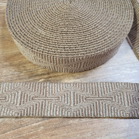 • Gummiband/Posamentenborte elastisch, dunkles beige mit Webmuster, 4 cm breit