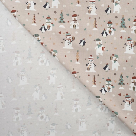 • Weihnachtsstoff sand „Schneemänner“, Baumwolljersey