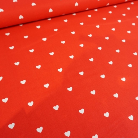 • weiße Herzen auf Rot, 100 % Baumwolle