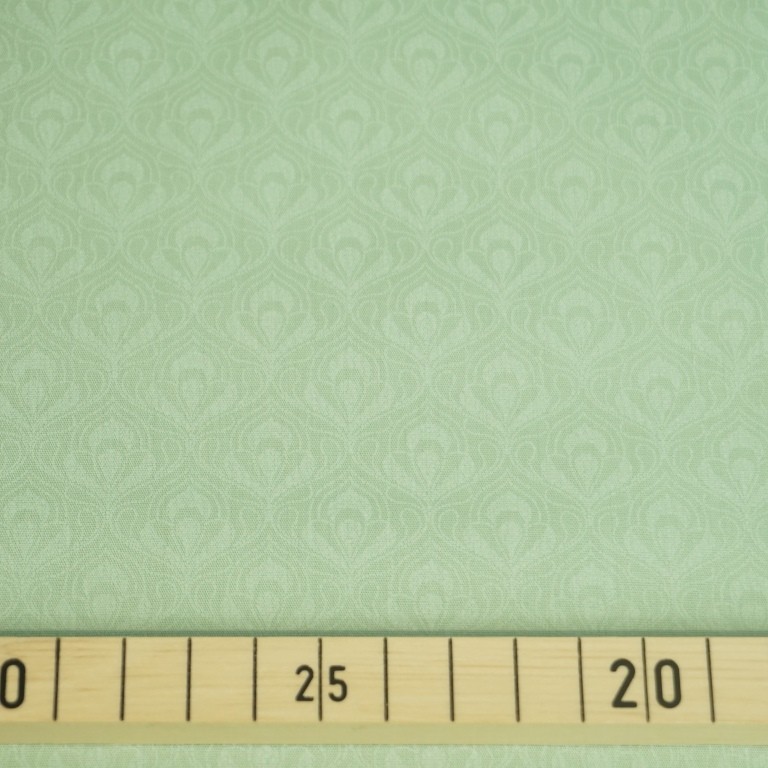 Baumwoll-Trachtenstoff mit Blütenornamenten auf Mintgrün.