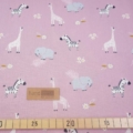 Toller bedruckter Baumwoll Poplin mit süßen Safaritieren – Elefant, Giraffe, Zebra – auf rosa.