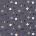 Bedruckte Baumwolle in grau mit Weihnachtskugeln-Motiv und kupferfarbenen Akzenten.