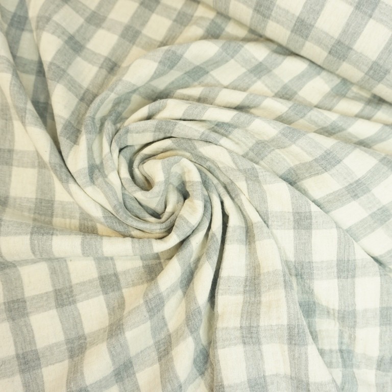 Musselin – Leinenmischung mit Karomuster in hellgrau – ecru.
