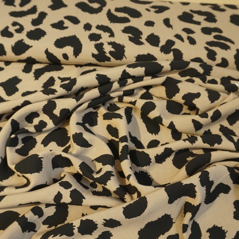 Feiner Viskosestoff mit Leopardenmuster auf Sand, für luftig leichte Blusen und Tuniken mit tollen Dessins nähen.