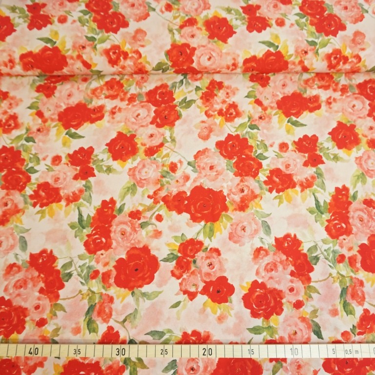 Feiner Viskosestoff mit Rosenmuster, für luftig leichte Blusen und Tuniken mit tollen Dessins nähen.
