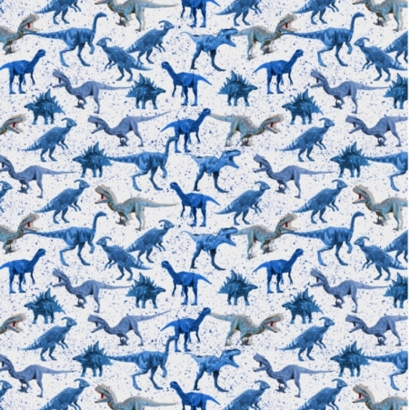 Baumwoll Jersey mit Dinodruck auf Weiß.