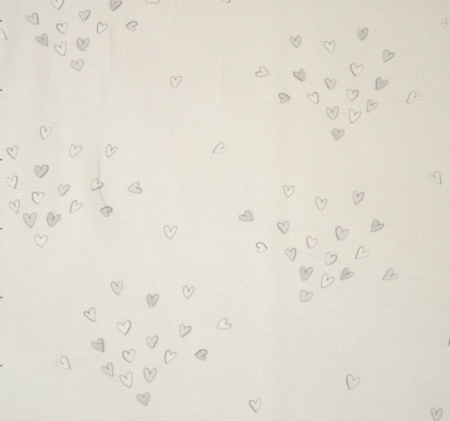 Baumwolljersey BABY COEUR von Hilco mit süßen Herzchen auf sand. Perfekt für selbstgenähte Sommerkleidung für Groß und Klein.