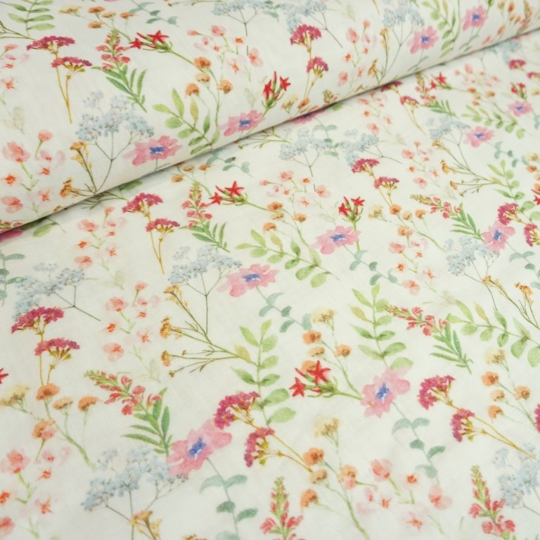 Weicher Musselin mit Blumenmuster auf Ecru.