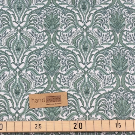 Tolle Baumwolle mit wunderschönem Blütenmuster in petrol und schwarz! Dieser Stoff eignet sich hervorragend zum Nähen von Trachtenschürzen, Taschen, Lätzchen, Home-Accessoires uvm.